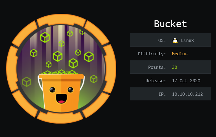 Bucket, as the name implies, features a simulated Amazon S3 bucket that has been configured to allow anonymous users to perform read/write operations to the objects inside a bucket. This allows me to drop a web shell into the bucket to gain a foothold on the system. Enumerating on the system discovers several credentials from the DynamoDB and one of them is reused by the user. Inspecting the web configuration files reveals that there is an internal web currently running as a root user, which then can be exploited to gain root access.