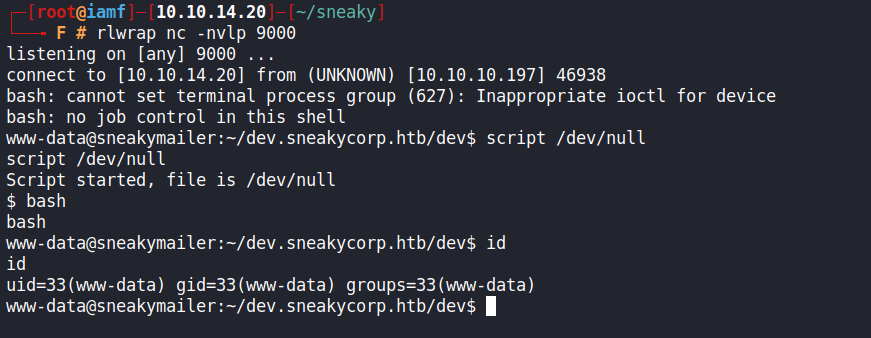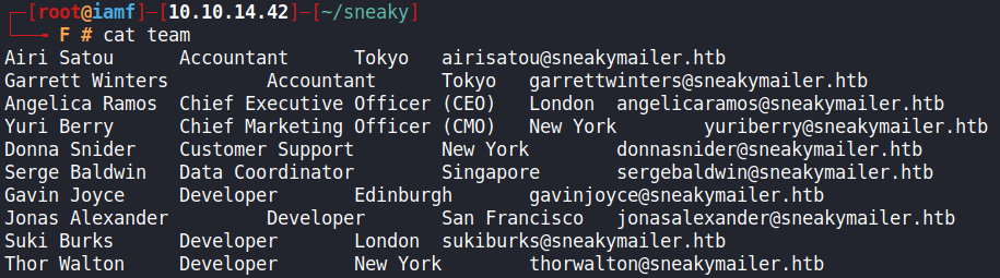 → root@iamf «sneakymailer» «10.10.14.42»