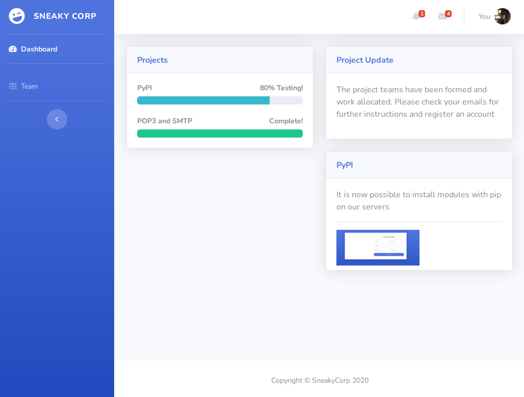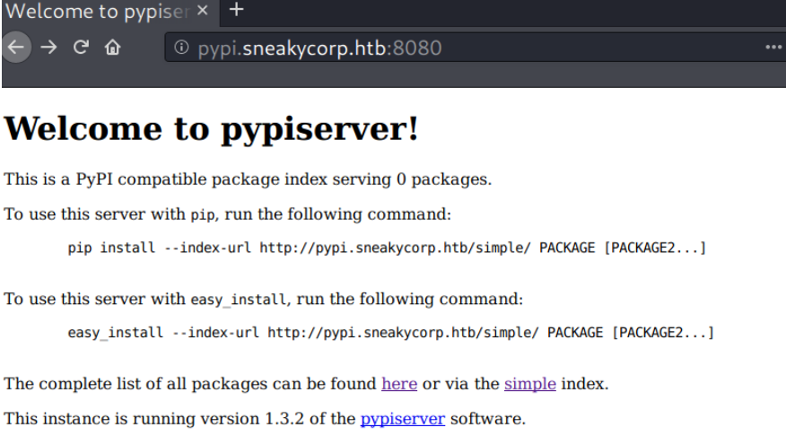 SneakyMailer is a medium difficulty Linux machine from Hack The Box that features a phishing attack. The credentials obtained through phishing allow me to access one of the users’ mailboxes and obtain another credentials for FTP. Foothold on the system can be gained after dropping a reverse shell on the FTP. Internal enumeration discovers a PyPI server that can be exploited to escalate myself to user by uploading a malicious package. The user is allowed to run pip3 with sudo privileges, and this can be leveraged to obtain root access.